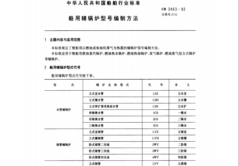 進入二十一世紀以來,隨著我國國民經濟的高速發展,我國船用鍋爐行業保持了多年高速增長,并隨著我國加入WTO, 近年來,船用鍋爐行業的出口也形勢喜人,2008年,全球金融危機爆發,我國船用鍋爐行業發展也遇到了一些困難,如國內需求下降,出口減少等,船用鍋爐行 業普遍出現了經營不景氣和利潤下降的局面,2009年,隨著我國經濟刺激計劃出臺和全球經濟走出低谷,我國船用鍋爐行業也逐漸從金融危機的打擊中恢復,重新進入良性發展軌道。為了更好地理解、區別船用鍋爐各個型號以及名稱的含義中國船舶工業總公司603特提出了《中華人民共和國船舶行業標準--船用輔鍋爐型號編制方法》,以便從事船舶行業的人員有統一的標準可以參照、交流。