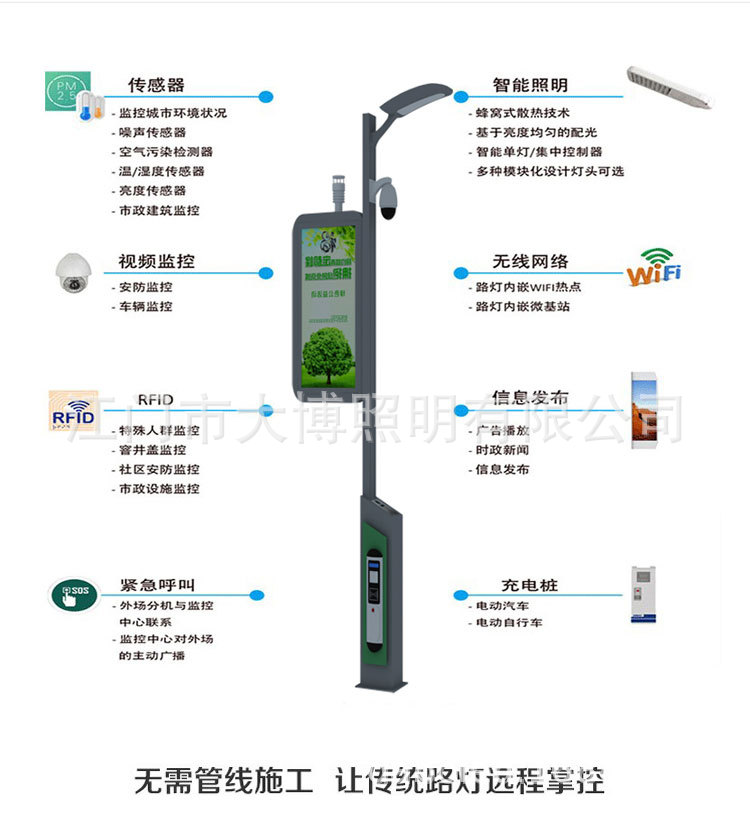 LED智慧路燈 定制小區(qū)廣場(chǎng)公園充電樁WIFI監(jiān)控廣告一體化智能路燈