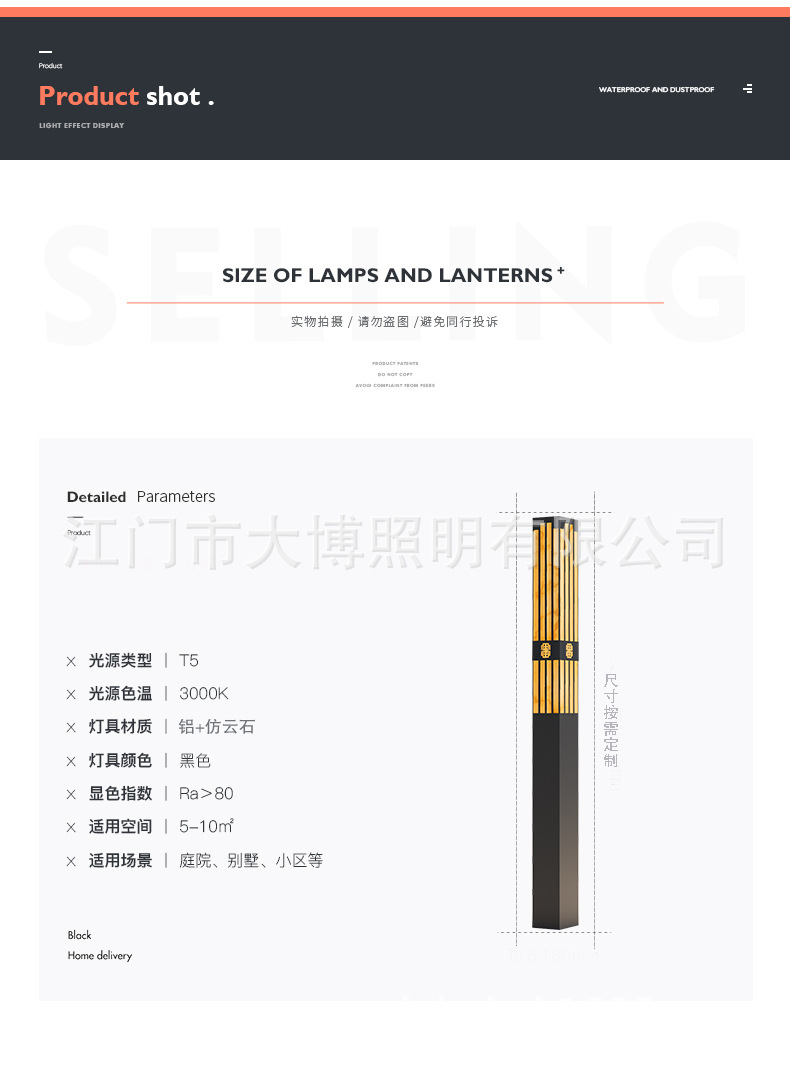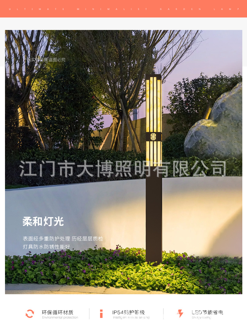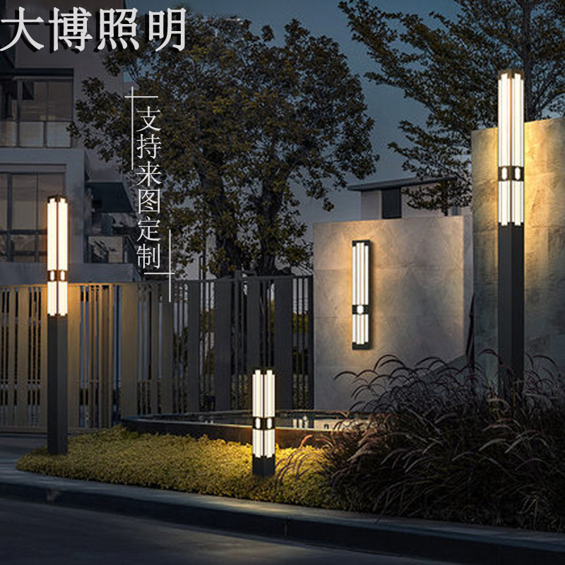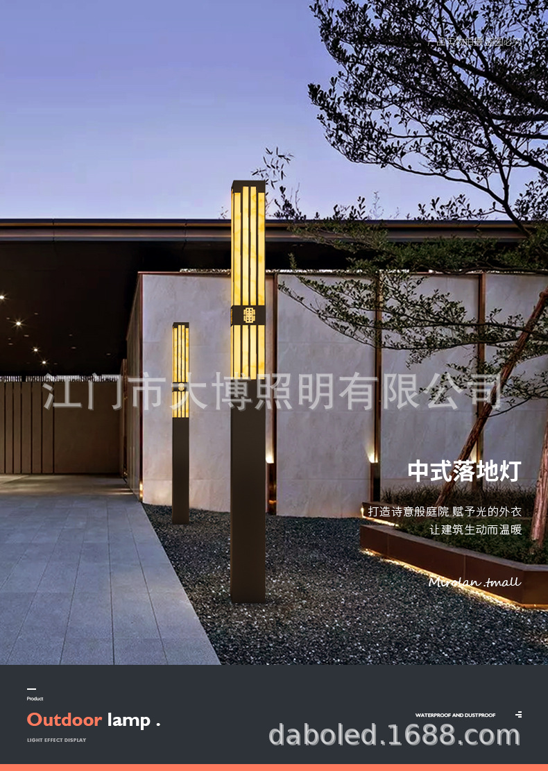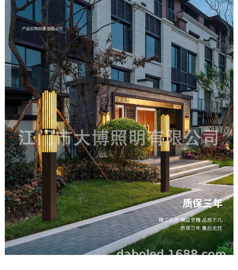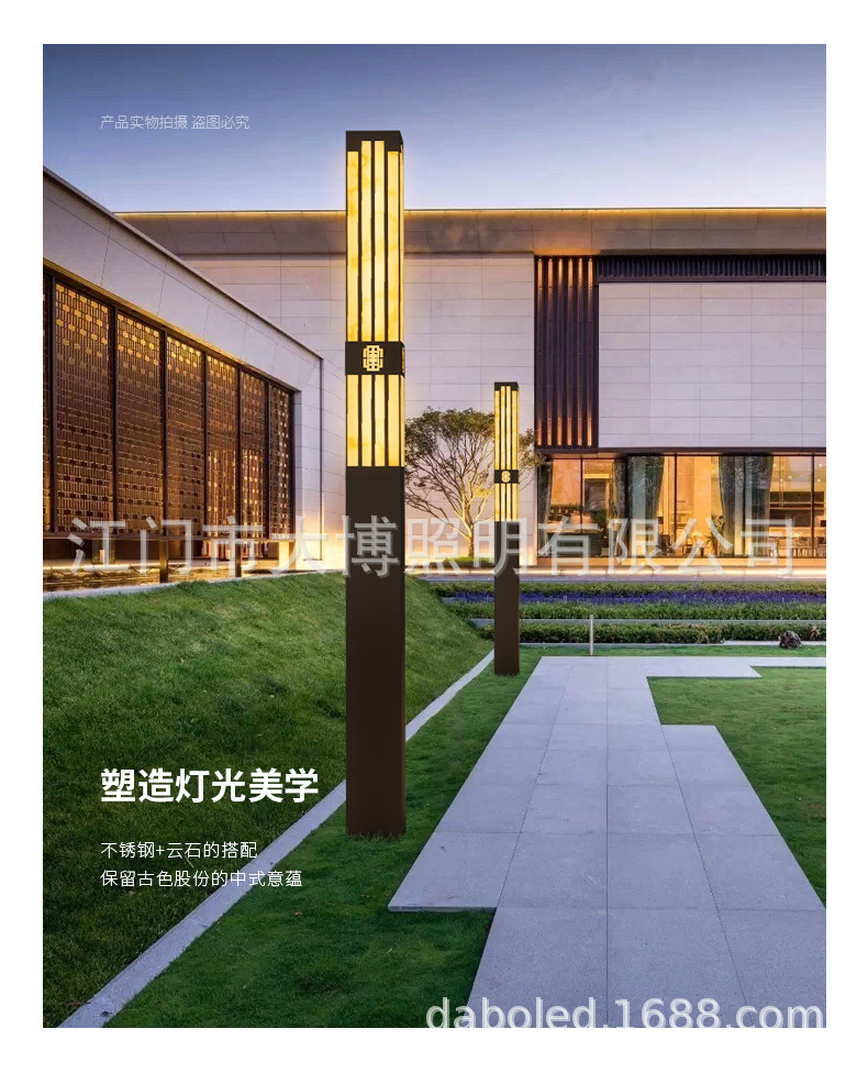 新中式方形景觀燈 LED庭院燈 特色拉絲電鍍不銹鋼景觀燈柱