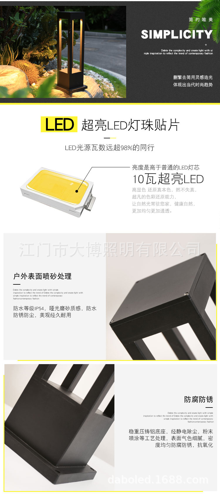 led草坪燈工程款方柱庭院燈小區花園特色四面光影效果廠家批發