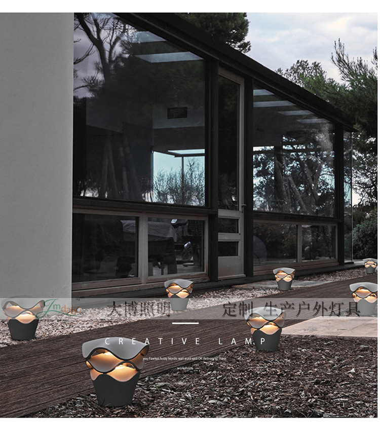 LED草坪燈波浪形特色現(xiàn)代簡約造型藝術(shù)鋁制防水花園草地柱頭燈
