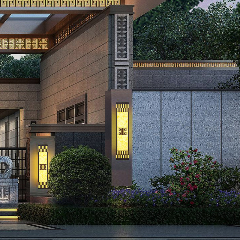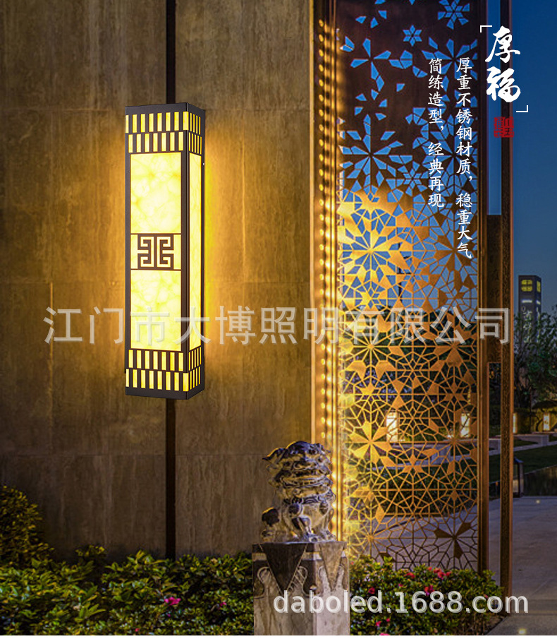 新中式壁燈小區(qū)商業(yè)街圍墻裝飾照明亮化云石罩LED戶外壁燈廠家