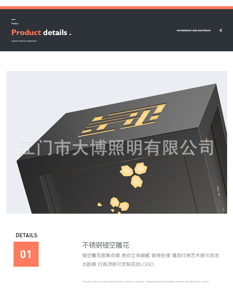 led柱頭燈特色新中式拉絲電鍍不銹鋼戶外小區(qū)庭院草坪圍墻燈批發(fā)