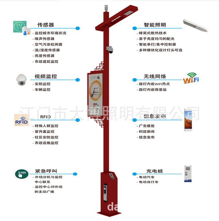特色中國紅5G城市建設充電裝監控WIFI環境監測智能智慧路燈