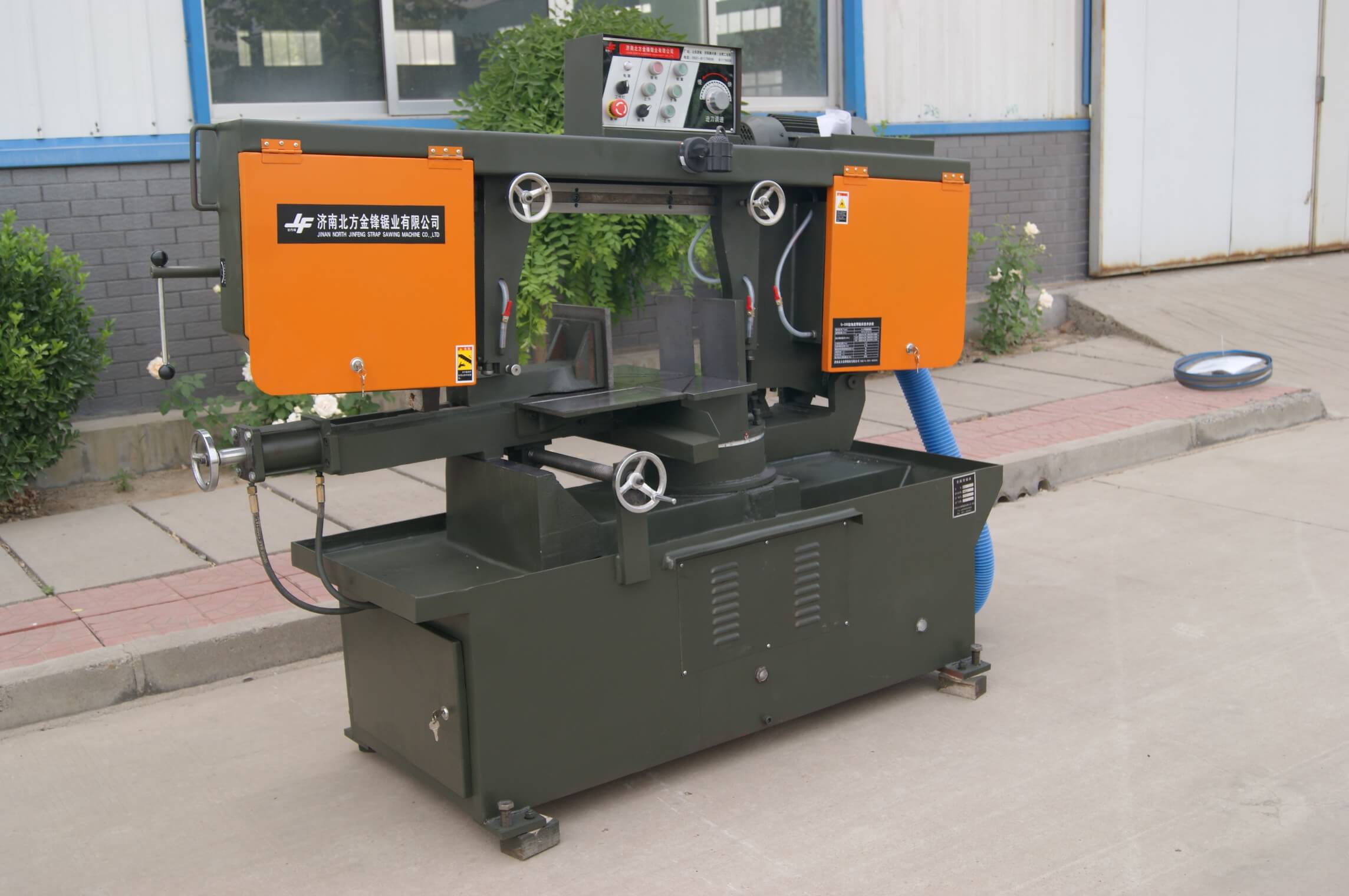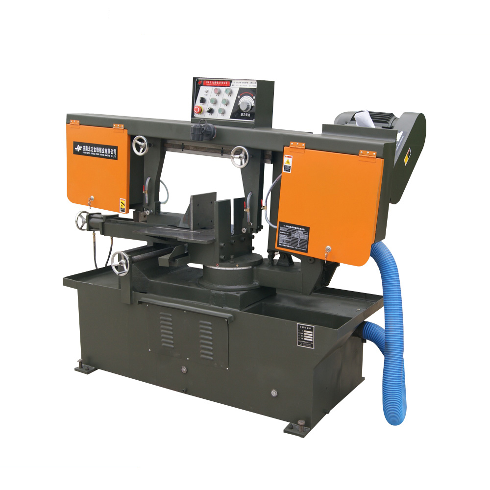 2、鋸床所切割的物料不動,鋸架可正向旋轉0-45?或反向旋轉0-60?,適應鋸切有角度要求的各種角鋼、圓管、矩形管等。